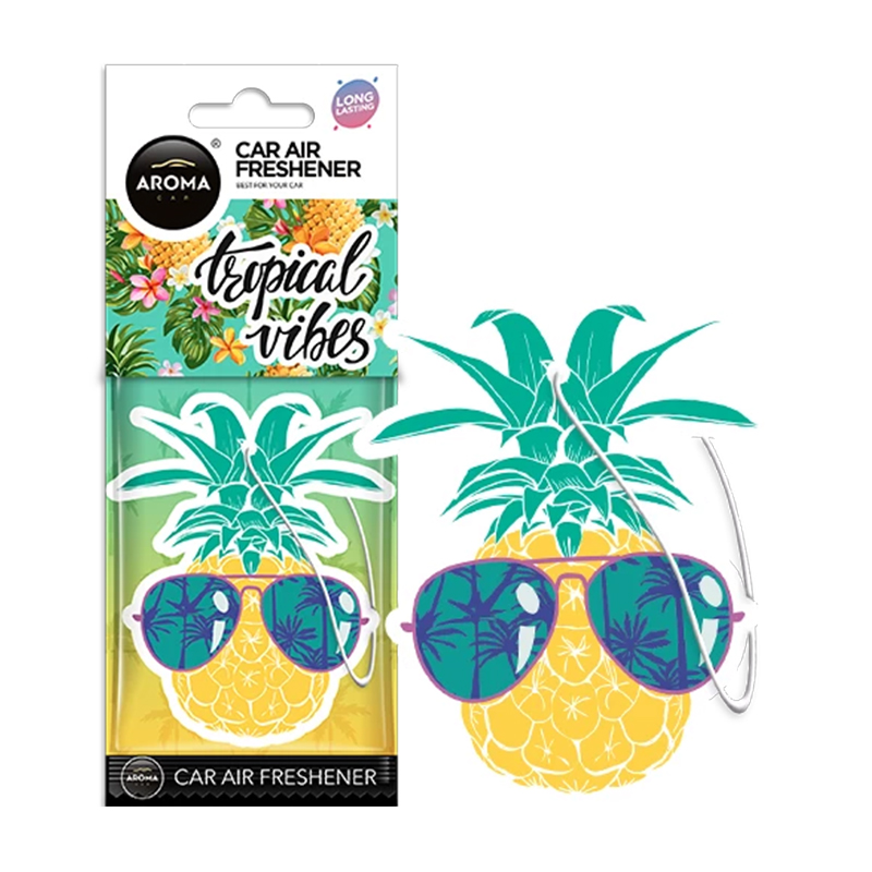 Bring the vacation vibes wherever you go with our Aroma Pineapple Mojito Air Freshener. Bursting with the zesty, refreshing blend of sweet pineapple and cool mint, this scent transforms any space into a tropical escape. Whether hung in your car, closet, or office, it’s the perfect pick me up for your senses. Fun, fruity, and energising this air freshener is your daily dose of paradise.