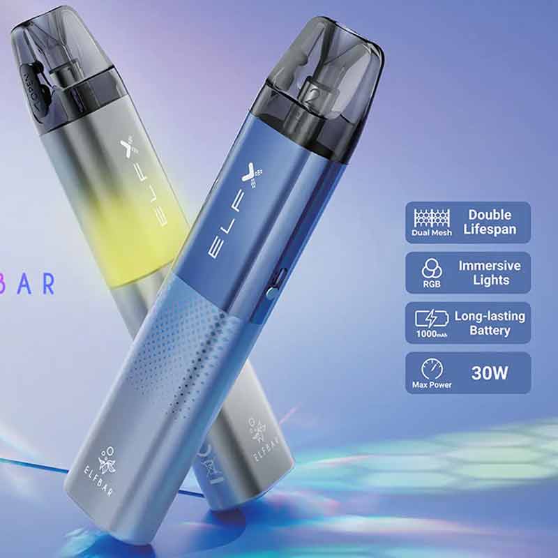 Introducing the Elf Bar ELFX Pod Kit, a stylish yet durable prism-shaped device made of aluminium with a streamlined form that fits easily in your hand and is ideal for on the go vaping. This unique kit provides rich and precise flavour with every single puff. The Elf Bar ELFX kit includes two refillable 2ml pods, each with a QUAQ coil with twin mesh technology, and caters to both loose and airy restricted direct lung (RDL) vapers with its 0.6ohm coil pod and tighter mouth to lung (MTL) lovers with its 0.8ohm pod.