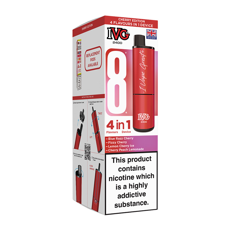 Experience the bold flavour of IVG 2400 4in1 Rechargeable – Cherry Edition, featuring a rich cherry taste that delivers a satisfying vaping experience. With a high nicotine strength of 20mg, it’s perfect for those seeking a quick and convenient option. Its sleek design and portability make it ideal for on-the-go use, ensuring you can enjoy your favourite flavour anytime, anywhere. Enjoy a hassle-free vape!