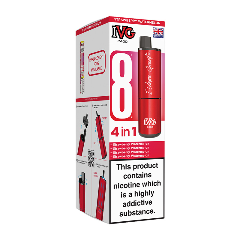 Experience the vibrant taste of IVG 2400 4in1 Rechargeable – Strawberry Watermelon. This portable device delivers a rich, sweet strawberry flavour with every puff, providing a delightful vaping experience. Designed for convenience making it perfect for on-the-go enjoyment. With a smooth throat hit and satisfying nicotine strength, it’s ideal for those seeking a fruity escape. Enjoy the simplicity and flavour in every draw!