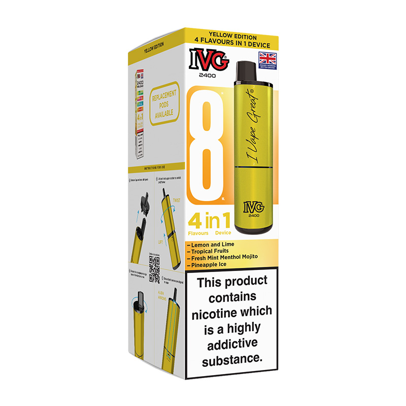 The IVG 2400 4in1 Rechargeable – Yellow Edition offers a vibrant flavour experience with a smooth nicotine hit. Crafted for convenience, it features an easy-to-use design, perfect for on-the-go vaping. The sleek, compact body ensures portability, while the satisfying vapour production caters to both new and experienced users. Enjoy a burst of refreshing taste that keeps you coming back for more with every puff. Ideal for those seeking a hassle-free vaping option.